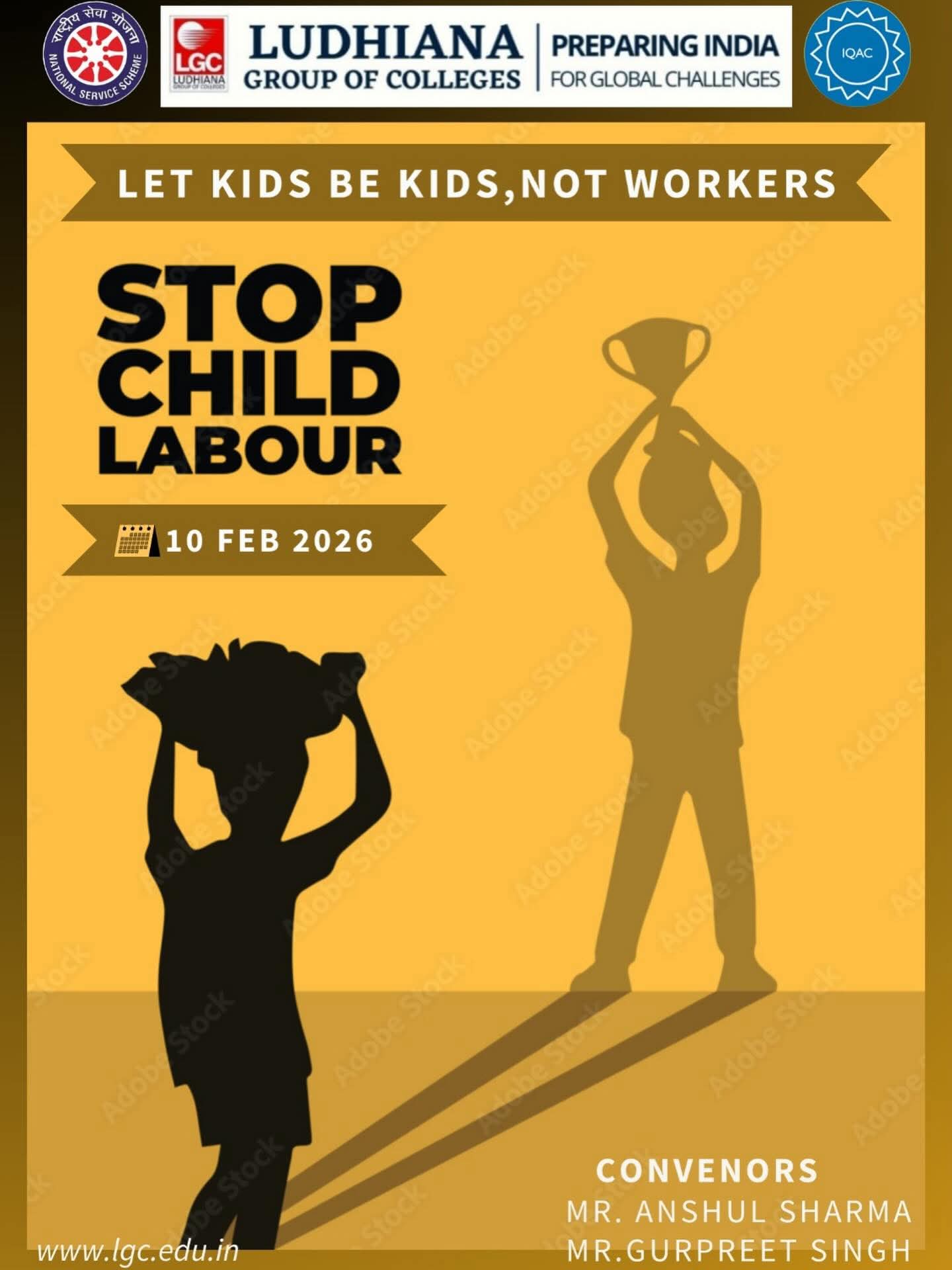 2/10/2026 Protect Childhood, End Child Labour ??? Protect Childhood, End Child Labour ??? The NSS Wing of Ludhiana Group of Colleges is taking a stand for our future! Today, we organized an essential awareness camp to spread the message: “Let Kids Be Kids, Not Workers.” We believe every child deserves a pen, not a heavy load, and a playground, not a factory floor. Let’s work together to ensure every child has the opportunity to dream and grow ?? #NSS #StopChildLabour #EducationForAll #LudhianaGroupOfColleges #ChildRights