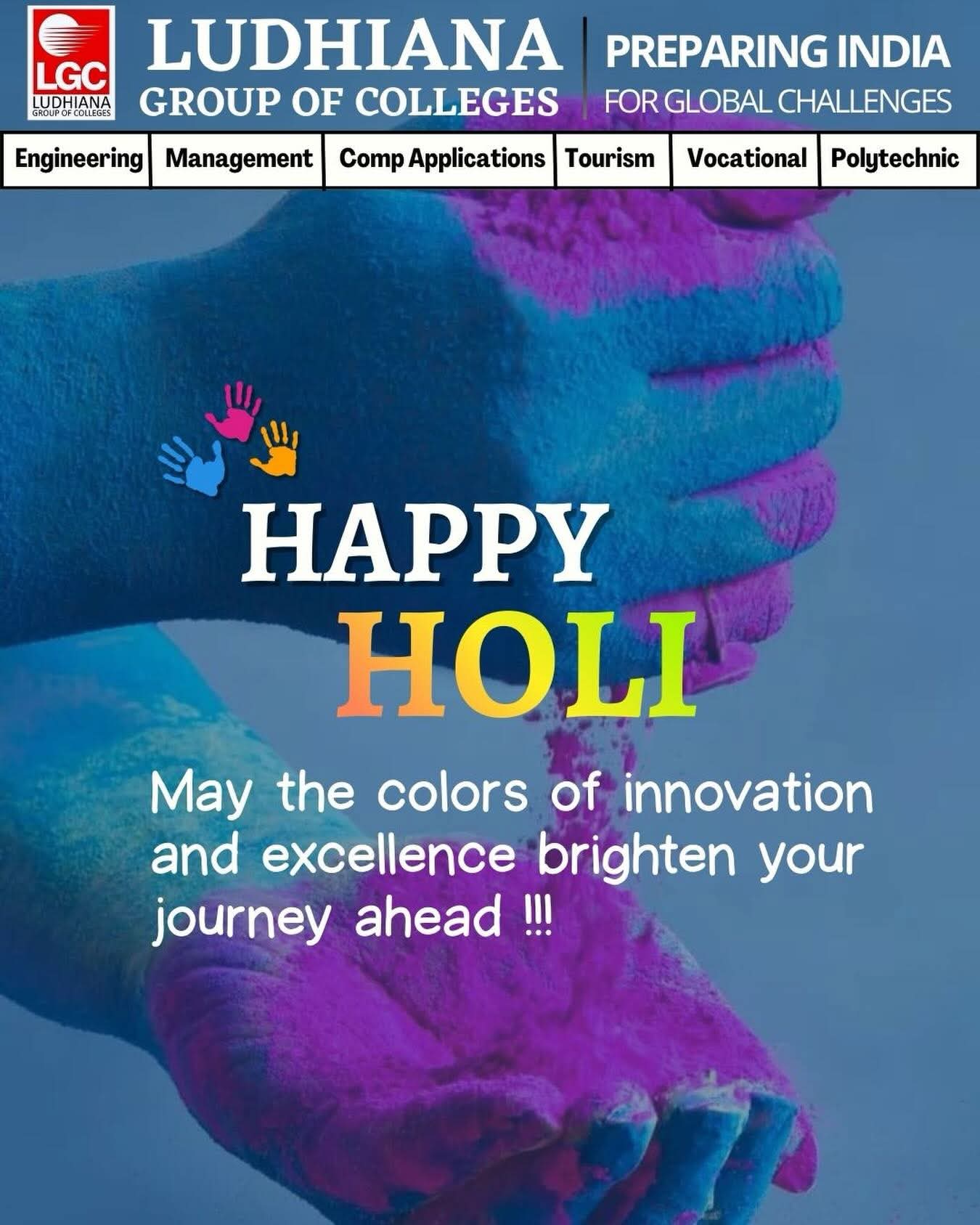 3/4/2026 Let’s paint a future full of brilliance and shared success… Happy Holi Let’s paint a future full of brilliance and shared success… Happy Holi ?????? #holivibes #diversity #coloursofindia #lgcludhiana #ludhianagroupofcolleges